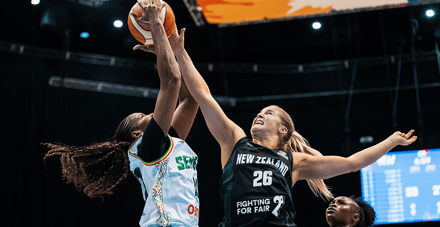 When Senegal pushed out to a 10–5 lead, Tall Ferns head coach Nat Hurst turned to her bench with an early timeout. Emme Shearer responded with a timely three-pointer to spark the Tall Ferns, before Ella Tofaeono finished a fast-break layup late in the period to close the gap, Senegal still with a narrow 14–10 lead at the end of the first quarter.
